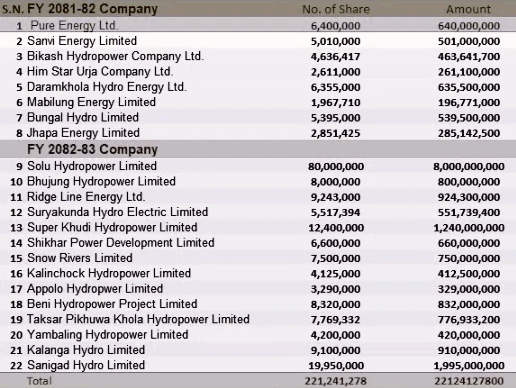 After CDSC insisted that separate International Securities Identification Numbers (ISIN) are mandatory for founder and ordinary shares, founder shares worth over NPR 2.21241 billion of 22 energy companies, including 3 solar energy companies, could not be listed on NEPSE.